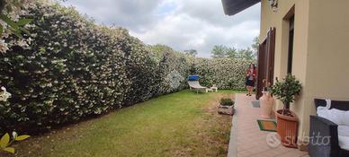 LONATE POZZOLO. In una delle zone più tranquille e riservate del quartiere residenziale, porzione di bifamiliare disposta su due livelli: piano terra e piano interrato, con giardino privato con diritto di passaggio dell'unità immobiliare posta a piano primo, ampia taverna e box doppio in larghezza.