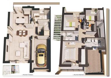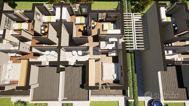 Le abitazioni si sviluppano su due livelli e sono circondate da un ampio giardino privato di circa 270 mq, ideale per chi desidera vivere gli spazi esterni in totale privacy, tra relax, verde e convivialità.