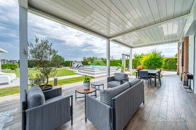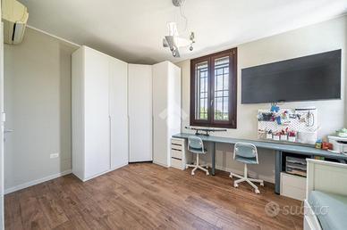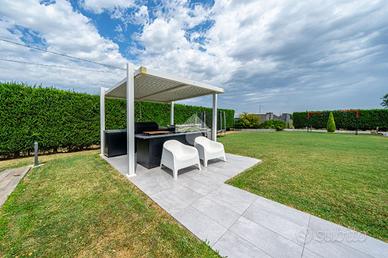 ALTEDO: Elegante porzione di villa bifamiliare, recente e con ampi spazi, situata in una posizione riservata e tranquilla, con un grande giardino privato e di un portico esterno chiuso, ideale per creare uno spazio versatile. L'impianto fotovoltaico (7,5 KW) con batteria d'accumulo ( 20 KW) garantisce risparmio energetico e sostenibilità, pompa di calore, piscina in cemento armato, zona barbecu, ingresso con autobloccanti posati su soletta di cemento di 30 cm, impianto di irrigazione e luci esterne a pavimento e lampioncini. La casa, con finiture di alta qualità offre il massimo del comfort e della privacy,un'opportunità unica per una vita serena e moderna. L'immobile è sviluppato su 3 livelli e circondato dal giardino esclusivo su tre lati di circa 850 mq con una piscina, attrezzata per ospitare parenti ed amici e zona barbecu. Al piano terra troviamo la spaziosa zona giorno con ingresso su salone, cucina abitabile e funzionale, lavanderia e bagno; una scala conduce al primo piano dove troviamo 3 camere da letto, bagno, cabina armadio, disimpegno con accesso al terrazzo loggiato ( 34 mq). Al terzo ed ultimo piano è presente il sottotetto non abitabile (mansarda) dov'è presente un altro bagno. La villa si contraddistingue per la grande luminosità, oltre alla scelta di finiture di pregio, cura nei dettagli. L'immobile si trova a poca distanza dal centro di Altedo, paese ben fornito di tutti i servizi utili alla vivibilità quotidiana come bar, tabacchi, banche, poste, uffici comunali, supermercati e negozi di alimentari, farmacie, asilo nido, scuola materna, elementari e medie. Sono inoltre presenti numerose fermate della corriera di linea 356 (Tper) Bologna e Ferrara,senza bisogno di utilizzare il tuo mezzo personale! E' ben provvisto anche di servizi secondari, ma comunque fondamentali per lo svago ed il tempo libero come ristoranti, parchi, centro sportivo e piscina. A pochi chilometri è presente anche il casello autostradale di Altedo con entrata/uscita de