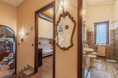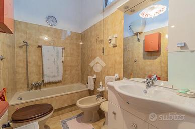 La zona notte, al piano superiore, ospita una cameretta, due camere matrimoniali, di cui una con bagno privato dotato di doccia, vasca e cabina armadio, oltre a un secondo bagno finestrato.