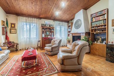 L'abitazione, dotata di ingresso indipendente, si apre su un ampio doppio soggiorno con camino, ambiente accogliente e luminoso che introduce alla zona giorno.