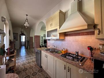 Nella zona giorno troviamo un salone con dettagli in stile rustico e camino, un cucinotto a vista e una spaziosa lavanderia.