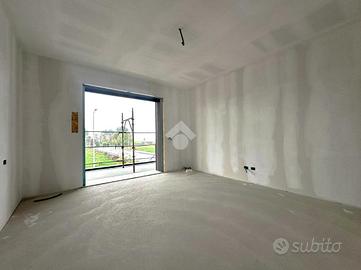 Varcando la porta d'ingresso ci accoglie l'ampia e luminosa zona giorno openspace con angolo cottura. Sempre sullo stesso piano bagno di servizio con doccia e attacco lavatrice.