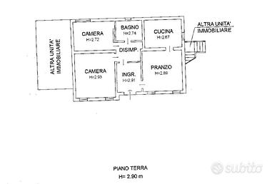 La porzione al piano primo è composta invece da ingresso, soggirono, cucina seprata, bagno finestrato con vasca e due camere matrimoniali.