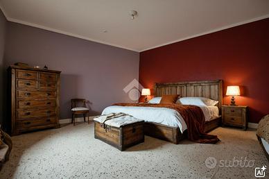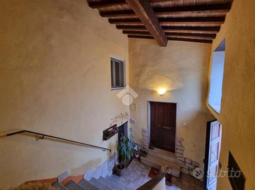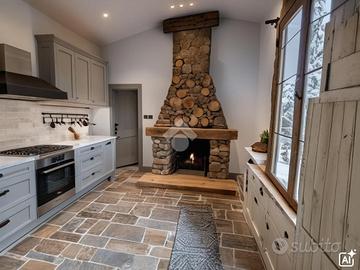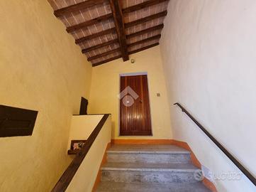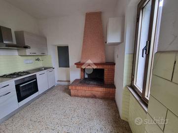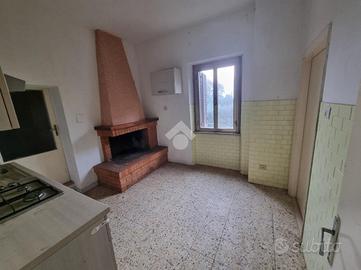 L'immobile di 90 mq, distribuiti su due livelli, si presenta con un primo ingresso in comune, che conduce al piano primo, dove, tramite ingresso indipendente, si apre un accogliente soggiorno e la cucina abitabile con camino.