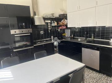 L'appartamento è disposto su due livelli, al piano terreno si trovano l'ingresso indipendente regolato dal portoncino blindato, un grande salone, la cucina abitabile, una camera da letto matrimoniale, il bagno ed il locale dispensa; collegato internamente da una comoda scala di immagine il piano secondo è composto da due ampie camere da letto ed il secondo bagno. Un grazioso terrazzo si affaccia sul giardino di proprietà.