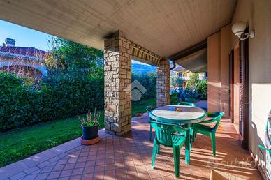 MAZZANO: in tranquilla via chiusa, lontana dal traffico ma comodissima a tutti i servizi, proponiamo immobile indipendente su piano unico, ideale per chi cerca privacy, confort e spazi esterni vivibili. L' abitazione è circondata da giardino privato di ca. 600mq, perfetto per momenti di relax all' aria aperta, attività all' aperto. Il grande portico rappresenta un vero valore aggiunto, ideali per pranzi e cene o comoda zona living esterna. Dall' ingresso si accede alla grande e luminosa zona soggiorno che apre sul grande porticato, la cucina è abitabile, dal disimpegno si arriva alla grande zona notte dove troviamo tre camere da letto matrimoniali, ed il bagno di ottime dimensioni con vasca e doccia. Completa il piano il comodo ripostiglio. Al piano seminterrato abbiamo spazi da utilizzare in base alle esigenze dei singoli clienti. La taverna di 40Mq ha il camino, secondo bagno/ lavanderia e ca. 100Mq da sfruttare come meglio si desidera. Completano l' unita abitativa un box per una macchina ed un secondo box di ca. 120Mq che può ospitare due autovetture ed il resto può essere sfruttato come magazzino. Soluzione ideale per chi desidera una casa indipendente su piano unico senza rinunciare alla praticità dei servizi.