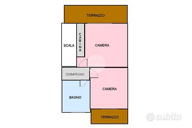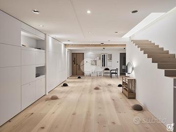 la presenza di una scala interna permette di dividere la zona giorno dalla zona notte, suddivisa in due camere da letto di cui una con cabina armadio, bagno padronale e due balconi.