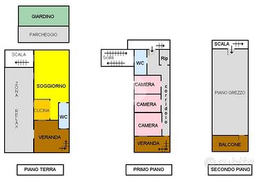 La metratura generosa dell'immobile permette di avere due abitazioni: la prima articolata in zona giorno al piano terra e zona notte al primo piano, la seconda, su un unico livello, al secondo piano.