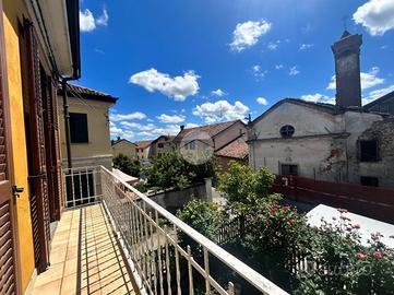 Via Tagliaferro, in contesto bifamiliare, appartamento al primo piano con parte esterna privata. L'immobile gode di accesso in cortile comune dove è ubicato un box auto e gode di un cortile/giardino privato sfruttabile nella bella stagione. Una scala esterna accompagna al primo piano dove si sviluppa un balcone angolare con porta d'accesso all'appartamento. L'appartamento gode di quattro aree d'esposizione che donano un'eccellente luminosità agli ambienti, grazie anche alla presenza di due balconi. Il soggiorno è di generose dimensioni, la cucina abitabile e sono presenti due camere da letto, una matrimoniale ed una singola. Il bagno è finestrato e dotato di box doccia. La soluzione è in zona tranquilla, ma senza rinunciare alla comodità dei primi servizi offerti da Moncalieri.