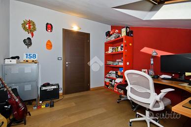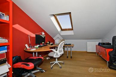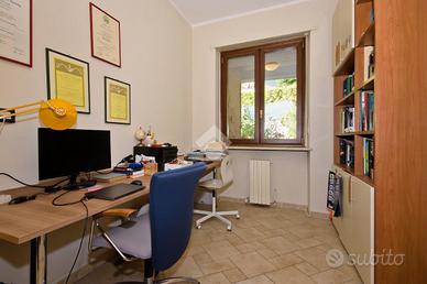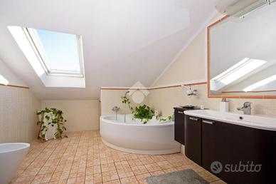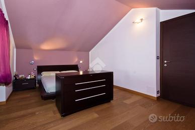 Al piano superiore, collegato da elegante scala interna, si sviluppa la zona notte: un disimpegno ben distribuito conduce alle cinque camere da letto, spaziose e luminose e ai due bagni, entrambi finestrati, di cui uno dotato di vasca angolare.