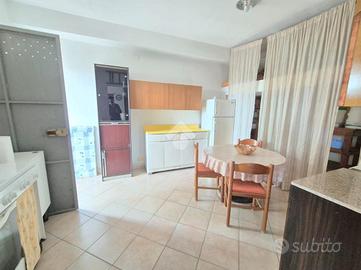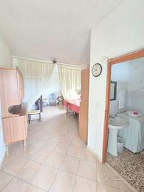 Ampio soggiorno luminoso, camera, bagno e terrazzo.
