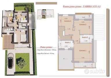 Superficie abitativa: 68 mq + 10 mq di balconi.