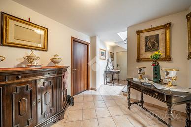 All'ultimo piano troviamo una mansarda spaziosa, suddivisa in tre ambienti polifunzionali che possono essere adibiti a studio, sala hobby, palestra o eventualmente altre camere da letto. Gli ambienti mansardati sono ben rifiniti, dotati di finestre e lucernari che rendono gli spazi ariosi e vivibili tutto l'anno. La casa è dotata di ben 4 bagni, disposti strategicamente su più livelli, tutti finestrati e in ottime condizioni, garantendo comfort e funzionalità per ogni membro della famiglia. Completano la proprietà una comoda lavanderia separata, una cantina funzionale e ben organizzata, oltre a un doppio garage con accesso