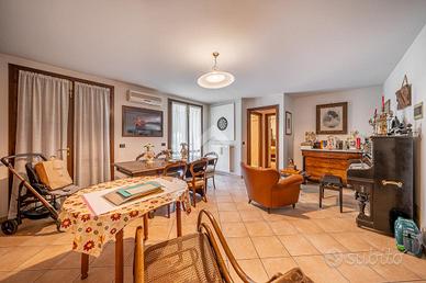 Zona giorno ampia, luminosa e ben distribuita, ideale per momenti di relax in famiglia o per ricevere ospiti. Il soggiorno è caratterizzato da due porte fenestre che garantiscono luce naturale durante tutta la giornata e da cui si accede direttamente a un terrazzo vivibile, perfetto per pranzi all'aperto o per godersi il verde circostante.