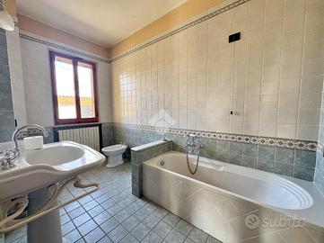 Nel comune di Montelabbate, proponiamo una porzione di bifamiliare, composta da quattro locali, costruita nel 1982, ristrutturata nel 2000 che si estende su una superficie commerciale di 176,5 mq. La posizione piuttosto dominante permette di godere di una vista aperta e ariosa sul paesaggio collinare dell'entroterra marchigiano. La proprietà si sviluppa al piano terra, ed è dotata di un giardino di circa 800 mq, ideale per godersi momenti di svago all'aria aperta, per cene estive, per far giocare i bambini in sicurezza o per i tuoi amici a quattro zampe. Passando da una comoda e curata corte in comune arriviamo all'ingresso indipendente dal quale accediamo alla zona giorno, composta da una spaziosa cucina abitabile, separata da un ampio soggiorno dotato di camino termoventilato collegato anche alla cucina, donando così un'atmosfera calda e conviviale agli ambienti. Dal disimpegno accediamo alla zona notte contraddistinta da due camere matrimoniali, di cui una dotata di cabina armadio, e due bagni, dei quali uno dotato di vasca e uno di doccia. Un ulteriore punto di forza di questa proprietà è la presenza di un garage e di una cantina, e di due posti auto coperti. L'immobile è servito da caldaia a gasolio dotata di elettrovalvole, che consente di riscaldare autonomamente gli appartamenti al piano terra e al primo piano, garantendo efficienza energetica e gestione personalizzata del calore. Un elemento distintivo di questa proprietà è anche rivolto al sistema di raccolta dell'acqua piovana, che si avvale di cinque cisterne, in comune con l'appartamento al piano primo, un'opzione ecologica che consente di ridurre i consumi idrici e di gestire in modo sostenibile le risorse naturali. Precisiamo che in caso di interesse è possibile acquistare anche l'appartamento di 335,59 mq commerciali posto al piano primo, ampliando così lo spazio abitativo, al prezzo complessivo di 400.000,00€. Questa residenza signorile e indipendente è un'occasione imperdibile se cerchi u