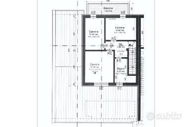 ZONA NOTTE piano primo . Tre camere da letto (12mq, 13mq, 16mq) - Bagno (7mq)