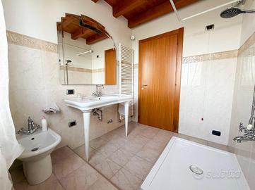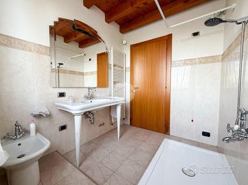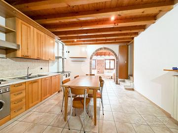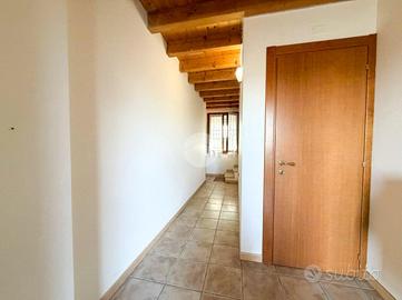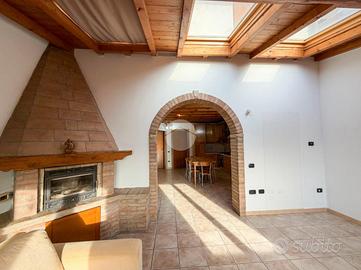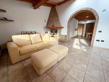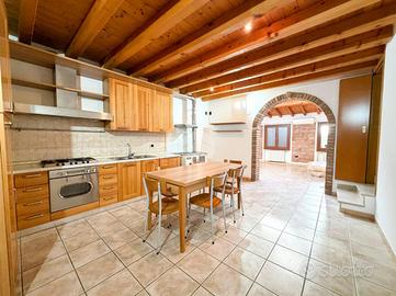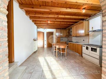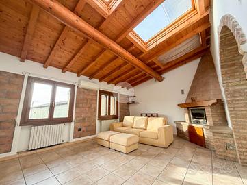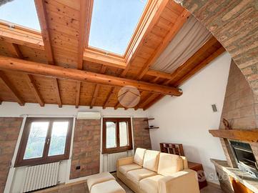 Piano Primo con: Soggiorno luminoso con travi a vista, abbaini e finestre - Cucina abitabile separata - Bagno completo di sanitari principali e doccia - Prima camere da letto.
