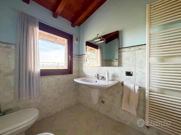 Piano Terra con: Ingresso - Lavanderia/Bagno completi di sanitari e doccia (predisposizione lavatrice/asciugatrice e addolcitore) - Taverna con camino collegato alla cucina a pellet del piano primo.