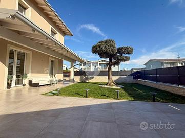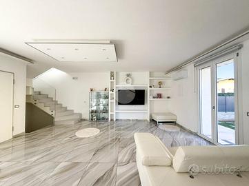 COSA SAPERE SULLA CASA: Bifamiliare. Piano terra con Soggiorno - Cucina - Bagno; Piano primo con tre Camere da letto - Bagno; Piano interrato con ampia cantina/taverna - Bagno/lavanderia - Garage di 39mq. Esternamente: Portico - Terrazza pavimentata - Giardino. Libera su tre lati. UBICAZIONE in zona centrale al Paese, Via Risorgimento. CARATTERISTICHE INTERNE La soluzione che proponiamo possiede finiture di pregio, riscaldamento a pavimento e climatizzazione. Serramenti in PVC con doppio vetro e zanzariere. Travi esterne bianche, portico abitabile, terrazza pavimentata e giardino.
