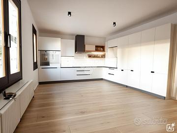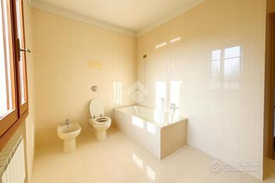 Dal portico accediamo al piano terra dove sono presenti un soggiorno, la cucina separata. Completano il piano un bagno con box doccia e un angolo lavanderia di generose dimensoni.