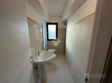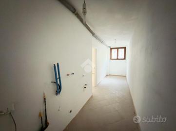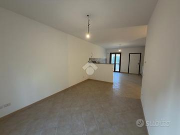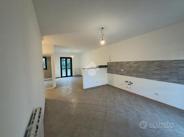 Al piano terra troviamo angolo cottura con soggiorno open space e bagno finestrato con doccia. Al piano terra inoltre troviamo l'ingresso principale che è contornato da un giardino pavimentato di circa 130 mq. Il giardino offre spazio per momenti di relax o per una zona barbecue, creando una continuità tra gli spazi interni ed esterni.