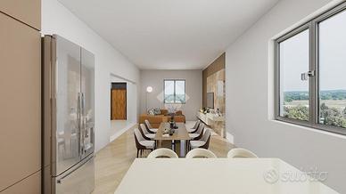 La zona giorno è composta da una sala da pranzo con cucinino separato.