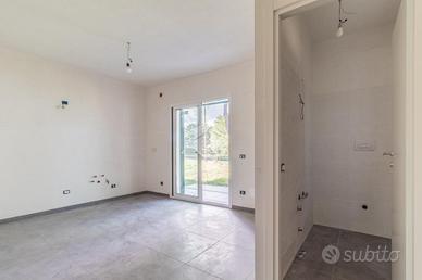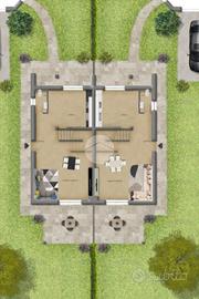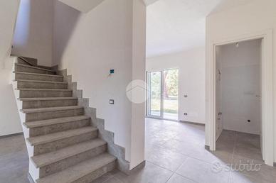 La proprietà è una porzione di bifamiliare, già completata, costruita in stile moderno su due livelli e dotata di un ampio giardino privato che garantisce privacy e tranquillità.