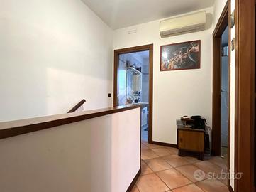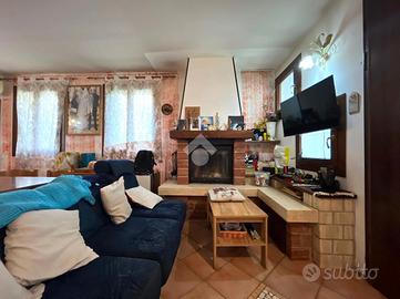 Nervesa della Battaglia: proponiamo in vendita una luminosa porzione a schiera, ideale per chi cerca ampi spazi interni ed esterni in una zona tranquilla e ben servita. Al piano terra vi è ampio soggiorno con caminetto perfetto per momenti di relax, cucina separata e funzionale, ed un locale lavanderia con bagno di servizio. Salendo le scale, al primo piano troviamo tre camere da letto ed un bagno finestrato con box doccia. La camera padronale è dotata di secondo bagno privato e terrazzo. Tramite una scala retrattile si può accedere ad un ampia soffitta con lucernario che potrebbe essere utilizzata come disbrigo o ripostiglio. Scendendo al piano interrato, c'è un garage doppio di circa 40 mq, un locale termico e un magazzino. All' esterno dell'abitazione vi è un giardino privato di circa 300 mq con l'impianto d'irrigazione ed un portico travato di 30 mq, perfetto per pranzi all'aperto e momenti di relax. Ulteriori dotazioni dell'abitazione, sono l'impianto fotovoltaico da 4 kw, un sistema dall'allarme perimetrale con telecamere per la vostra sicurezza e un impianto di climatizzazione. Anno di costruzione 1995.Abitazione di circa 210 mq complessivi. Ulteriori informazioni dei servizi vicini:Scuola primaria: 300m;Farmacia: 850m;Supermercato: 3 km;Farmacia: 850m. L'indirizzo dell'immobile è indicativo, al fine di garantire la privacy del proprietario.