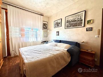 La zona notte comprende due camere da letto matrimoniali, entrambe con affaccio sul balcone interno cortile, e un bagno finestrato dotato di doccia.