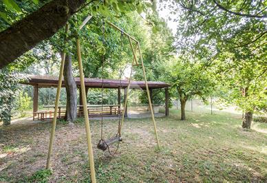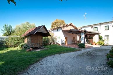 La casa è dotata di aria condizionata per garantire il massimo comfort in ogni stagione. All'esterno, un ampio giardino circonda la proprietà, offrendo uno spazio ideale per momenti di relax all'aperto.