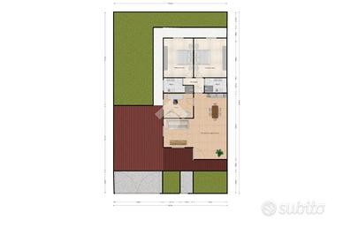 OFFLAGA - Porzione di bifamiliare sviluppata tutta su un piano con 2 camere matrimoniali, camera singola o studio, 2 bagni, giardino e 2 posti auto coperti