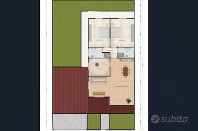 OFFLAGA - Porzione di bifamiliare sviluppata tutta su un piano con 2 camere matrimoniali, camera singola o studio, 2 bagni, giardino e 2 posti auto coperti