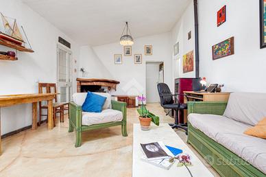 Attraverso la veranda si accede ad un luminoso soggiorno dotato di camino e collegato a una cucina. Un disimpegno conduce alla prima camera da letto matrimoniale e al bagno finestrato con doccia.
