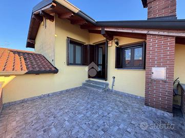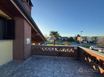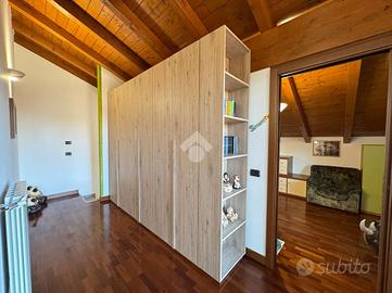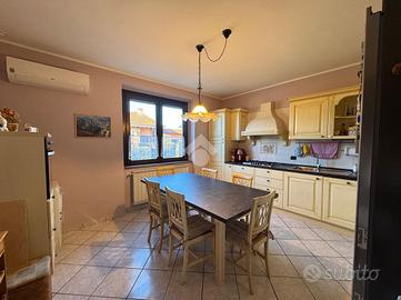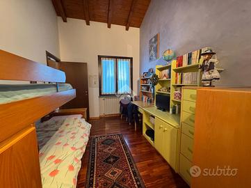 OLEGGIO: porzione di bifamiliare di recente costruzione, in zona tranquilla e ben collegata alle strade principali e ai servizi del paese.La proprietà si sviluppa su tre livelli: al piano terra ampia sala caratterizzata da camino completamente funzionante e regolarizzato, cucina, bagno e studio. Proseguendo al primo piano, tramite scala interna in marmo, si compone di tre camere da letto, di cui una con balcone, e un terrazzo esterno che affaccia su tutta la proprietà. Attraverso scala interna o esterna, sia accede ad ampia taverna completata da un bagno, una camera da letto e una sala con cucinotto. Infine, completano la proprietà un giardino privato che circonda i tre lati della casa, un box doppio con cancello e apertura elettronica e un'autorimessa adibita a deposito legna.La proprietà presenta sul tetto pannelli fotovoltaici da 6kw installati nel 2023 (accumulo fino a 10,5 kw).