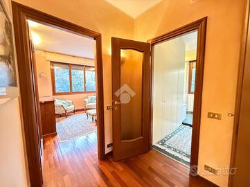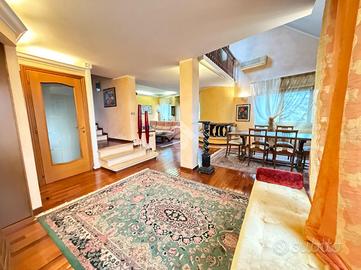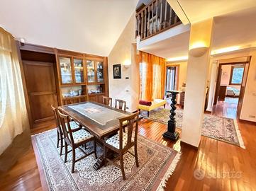 OLGIATE MOLGORA - In una bella zona del paese, in posizione tranquilla, lontana dalle strade trafficate, ma al contempo comoda per raggiungere in pochi minuti, anche a piedi, tutti i servizi del centro (stazione ferroviaria, fermate mezzi pubblici, scuole, farmacia, studi medici, negozi di prima necessità, ecc.), proponiamo una porzione di villa bifamiliare costituita da un appartamento al piano primo ed ultimo, oltre mansarda, completo di autorimessa adatta per parcheggiare due vetture. L'abitazione, realizzata nei primi anni 90, ha una superficie complessiva di circa mq 200 ed è composta da ingresso, ampio salone doppio accessoriato di camino, cucina abitabile, disimpegno notte, camera matrimoniale con cabina armadio e bagno finestrato. Una comoda scala in muratura conduce al piano superiore mansardato, ideale da adibire a zona notte con due camere, attualmente organizzato ad ampio locale open space con affaccio sul soggiorno sottostante, studio e locale hobby, con possibilità di creare un secondo bagno. La casa gode di un'ottima luminosità grazie alla presenza di numerose finestre e porte finestre attraverso le quali, dalla zona living, si accede ad un bel terrazzo, di circa mq 16 che dona all'abitazione uno sfogo esterno vivibile, ideale per godersi momenti di relax all'aria aperta e ammirare il bel panorama sul verde e sul paesaggio circostanti. La soluzione, inoltre, comprende al piano terra due ripostigli ed alcuni locali accessori, in comproprietà con l'abitazione sottostante, quali una lavanderia, un bagno, una cantina e il giardino/area esterna, di circa mq 1200. La casa, ottimamente tenuta, con finiture ricercate e di pregio, è ideale per chi cerca una tipologia immobiliare semindipendente, pronta da abitare, spaziosa, dotata di un bel terrazzo sfruttabile, luminosa e in una bella posizione, circondata dal verde e dalla tranquillità.
