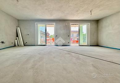 L'immobile, articolato su tre livelli, è ottimamente esposto e soleggiato e gode di ottima vista panoramica sul verde circostante. Al piano terra è presente la zona living openspace di circa 52 mq calpestabili comprendenti cucina a vista, sala da pranzo e salotto, con accesso al giardino da tutti i lati dell'abitazione, disimpegno, ripostiglio e bagno finestrato con doccia per un totale di oltre 65 mq su un unico livello. L'area esterna, di oltre 300 mq, comprende porticato di 25 mq, plateatico privato di 100 mq e verde esclusivo piantumabile di circa 200 mq con possibilità di realizzare una piscina interrata. Il primo piano ospita tre grandi camere da letto di oltre 12 mq tutte con sfogo esterno, di cui una padronale con bagno e accesso diretto alla loggia di circa 18 mq dalla quale si può godere un'invidiabile vista aperta sul verde circostante. Un secondo bagno serve le restanti stanze da letto e un pratico e funzionale ripostiglio funge da disbrigo. Al piano interrato si fa spazio la taverna finestrata, la funzionale lavanderia ed il grande box auto di oltre 40 mq.