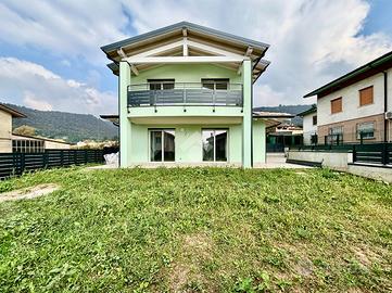 OME - Ubicata in località Valle, attraversata dai torrenti Gandovere e Martignago, nella zona collinare dove si snodano boschi, prati e panorami mozzafiato, sorge nuova e moderna villa bifamiliare realizzata in piena classe A e contraddistinta da dettagli predisposti alla massima efficienza energetica e sostenibilità.