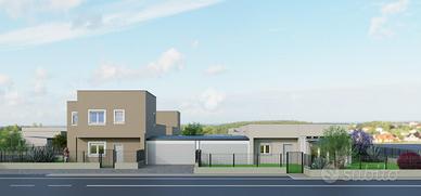 L1. Villetta indipendente su unico livello con soggiorno cucina, 3 camere da letto, 2 bagni, garage doppio e giardino angolare. Nuova costruzione in consegna a fine 2026, possibilità di scelta delle finiture, totalmente elettrica. Classe A