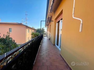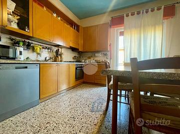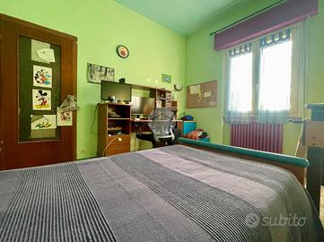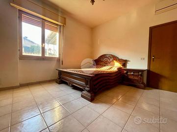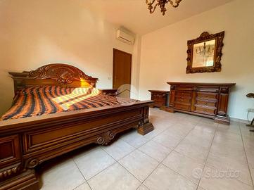 Al piano superiore è presente il secondo appartamento composto da soggiorno e cucina open space con sfogo sul balcone, quattro camere da letto e un ulteriore servizio finestrato con vasca.