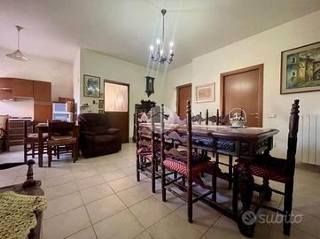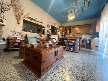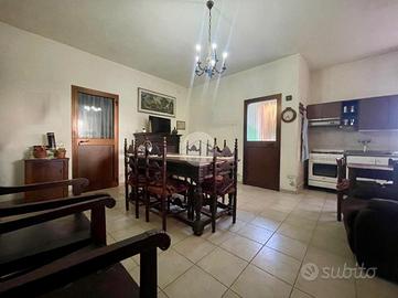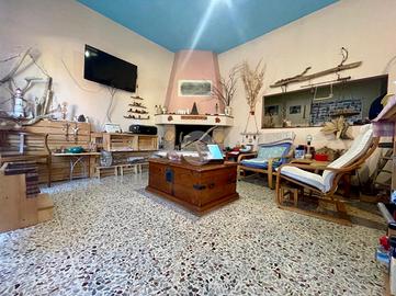 Al piano terra si sviluppa la prima soluzione abitativa con soggiorno, cucinino, servizio finestrato, camera da letto, un'ulteriore stanza che potrebbe essere sfruttata come seconda camera matrimoniale e l'autorimessa.