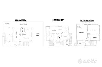PIANO TAVERNA - 80 mq.: dotata di porta blindata e rifinita, gode già di predisposizione per la cucina e di canna fumaria per il camino ed è servita da un bagno finestrato e corredato di doccia. Dalla taverna si accede ai box