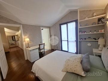 PIANO PRIMO - 110 mq.: qui troviamo una prima camera matrimoniale dotata di un suo bagno padronale, finestrato e dotato di doccia multifunzione; da entrambi questi ambienti abbiamo accesso ad un TERRAZZO di 20 mq. Abbiamo poi una seconda camera matrimoniale dotata di cabina armadio ed un secondo bagno, finestrato e dotato di vasca. E' presente inoltre una terza camera da letto, singola, dotata di accesso ad un balcone e già predisposta per la realizzazione del terzo bagno al piano.