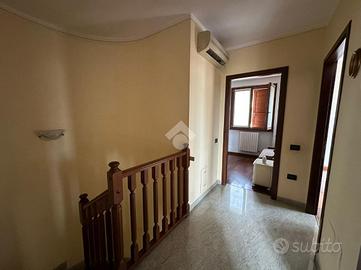 Salendo al piano superiore, troviamo la zona notte composta da tre camere da letto di generose dimensioni, due delle quali dotate di balcone, oltre al bagno padronale con vasca.