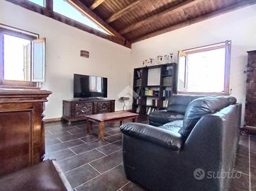 Proponiamo porzione di villa su due livelli composta da cucina abitabile, salone, camera da letto, studio e due bagni, totalmente arredata.