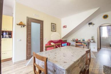 Nel suggestivo borgo medievale di Palombara Sabina, nel cuore della Bassa Sabina e alle pendici dei Monti Lucretili, dominati dal maestoso Monte Gennaro, proponiamo in vendita porzione di villa bifamiliare con giardino.