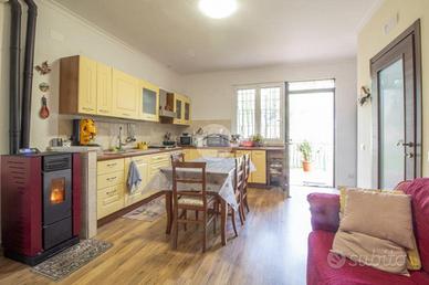 P.T.: varcata la porta d'ingresso blindata c'è una luminosa zona living, cuore accogliente della casa, composta da angolo cottura a vista che si apre armoniosamente sul salone, con stufa a pellet, ideale per creare un'atmosfera calda e confortevole nei mesi invernali. Sullo stesso livello si raggiunge il bagno con box doccia e una spaziosa camera padronale dotata di balcone panoramico, perfetto per godere di una piacevole vista e momenti conviviali all'aperto.