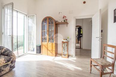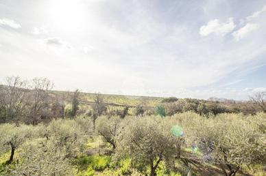 Nella parte inferiore, l'area esterna è rifinita in cemento e ospita una comoda terrazza panoramica, perfetta per pranzi all'aperto e serate estive. Da qui si gode di una splendida vista sul terreno circostante, coltivato con circa 25 ulivi, che donano fascino, privacy e un autentico tocco mediterraneo alla proprietà.