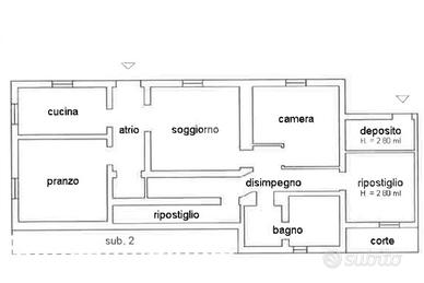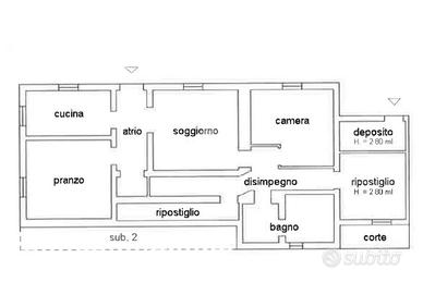L'ingresso, accessibile dal cortile di proprietà, introduce alla zona giorno composta da cucina abitabile, ampio soggiorno e sala da pranzo attualmente adibita a studio, con la comodità aggiuntiva di una piccola dispensa.