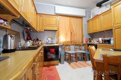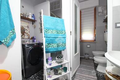 La soluzione si sviluppa al piano primo con l'ingresso sul disimpegno, cucina abitabile completa di arredamento, un ampio soggiorno con sala da pranzo avente sfogo sulla veranda, due camere da letto di cui una con affaccio sul balcone, ripostiglio e bagno completo di box doccia e finestra.